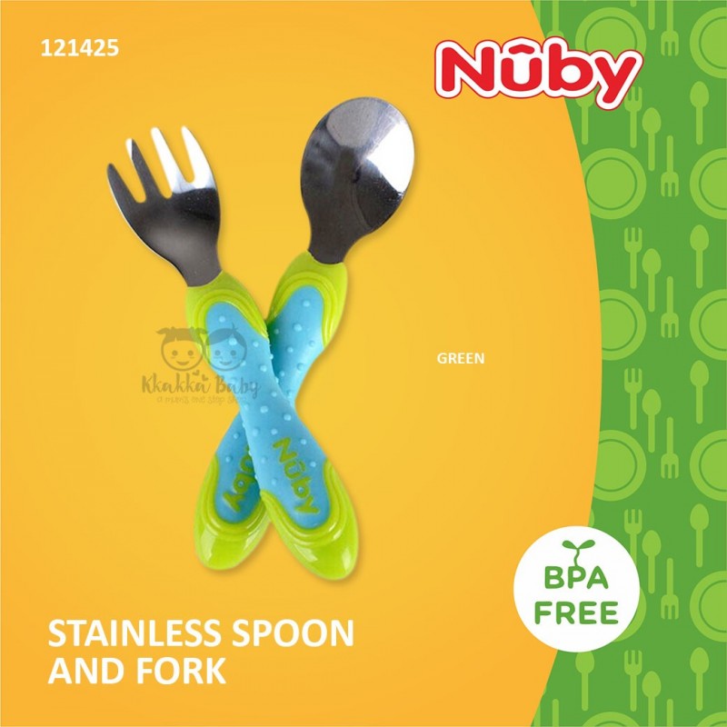 Nuby's Stainless Steel Cutlery dirancang khusus agar aman bagi tangan kecil untuk dipegang dan digunakan. Set alat makan mendukung perkembangan bayi dengan mempromosikan makan mandiri dan membantu membuat waktu makan menjadi saat bahagia! Alat makan baja tahan karat ini mendorong makan mandiri dan makan seperti orang dewasa!