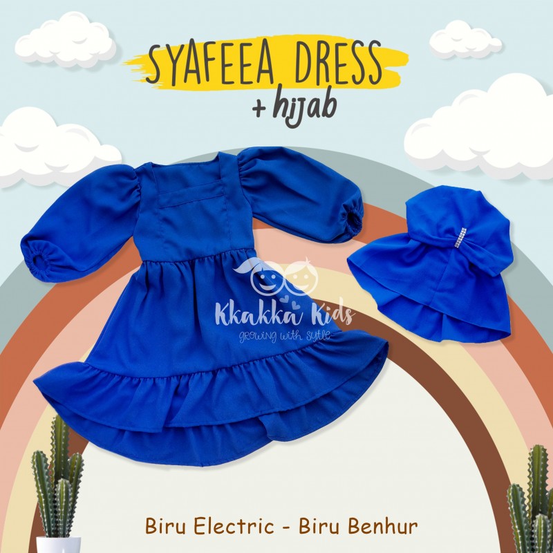 Syafeea Dress & Hijab - Indigo (Biru Electric - Biru Benhur)