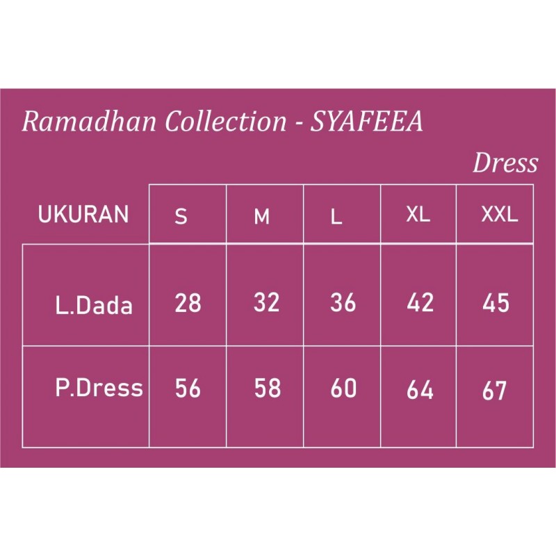 XXL : Lebar Dada: 45cm; Panjang Dress: 67cm